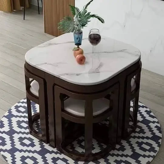 Elegant and Space-Saving Design: This dining table set includes 5 pieces crafted with a smart, space-efficient design. The table and chairs are perfect for modern interiors with limited space.