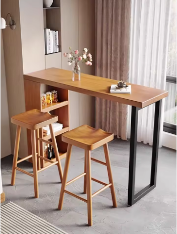 بار خشبي عصري مع وحدات تخزين جانبية يضيف لمسة من الأناقة والعملية إلى منزلك. مصنوع من خشب كونتر طبيعي مغطى بطبقة HPL عالية المتانة . يتميز بتصميم حديث مع سطح عملي وأرفف جانبية مثالية لتخزين الزجاجات والأكواب أو الديكورات الصغيرة.