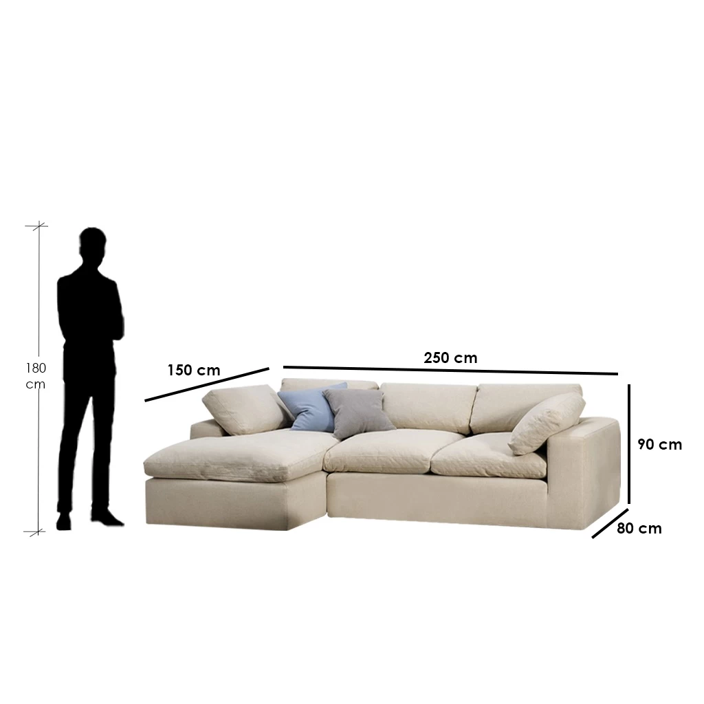 Sofa Dimensions: 250 cm (Length) × 150 cm (Width) .