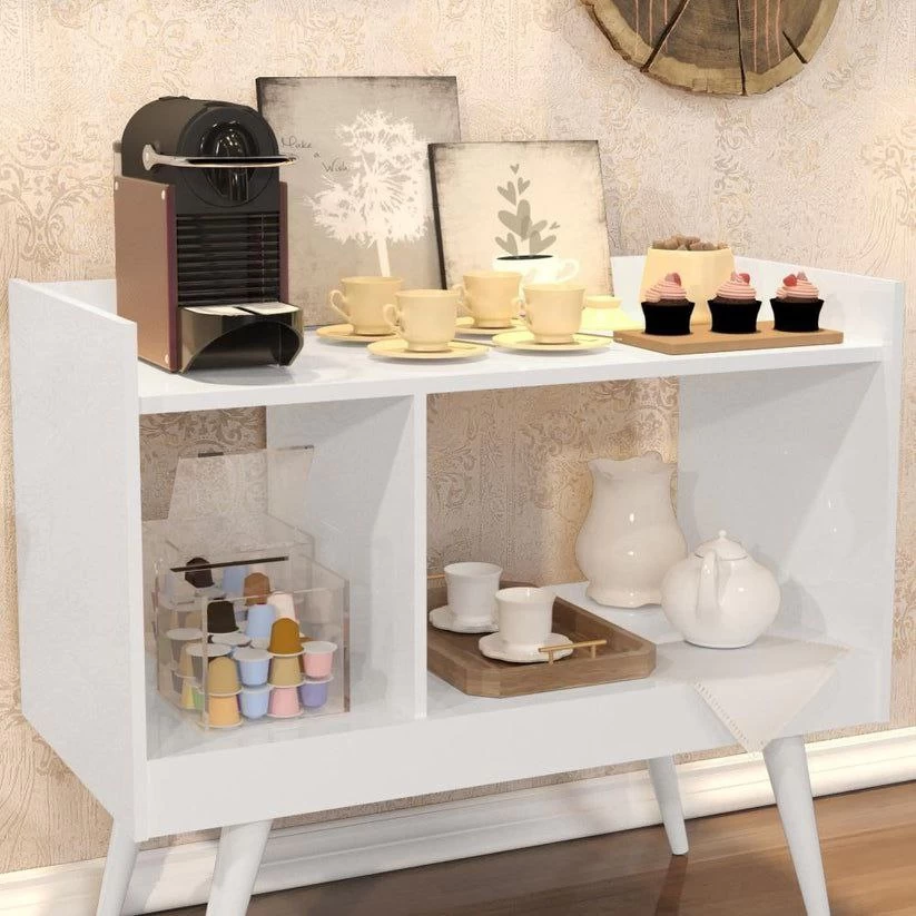 Modern and Elegant Design: A stylish and functional coffee corner in a pure white color with solid red beech wood legs. Its sleek and minimalistic design adds a warm and sophisticated touch to any space, making it a perfect addition to your home.