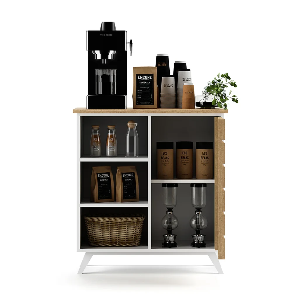 Its compact and functional design makes it ideal for preparing coffee and storing cups and accessories—perfect for kitchens, living rooms, or home offices.