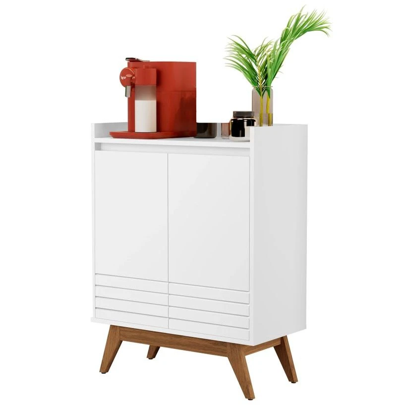 A stylish coffee corner that blends elegance and functionality, in a beautiful combination of white and brown. It brings warmth and comfort to the space, making it a perfect addition to any living room or dedicated coffee area.