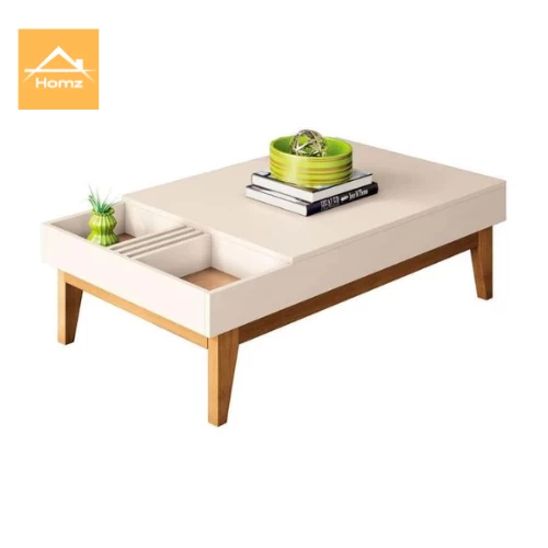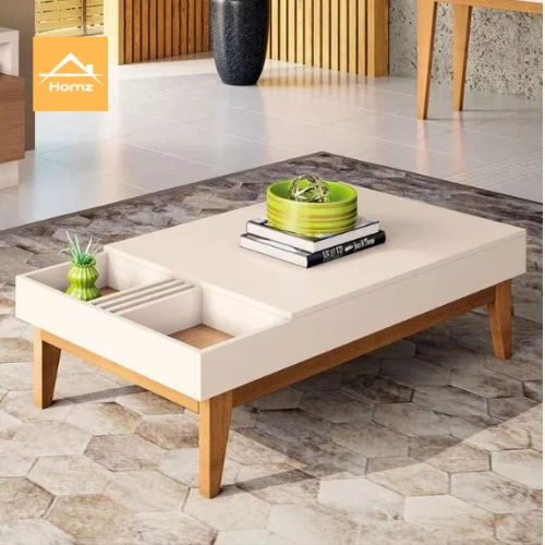 A rectangular coffee table that beautifully combines modern and classic design elements. Featuring a clean white finish with beige details, it adds a sense of elegance and warmth to any living space. The table includes two practical upper storage compartments, offering a stylish solution for organizing daily essentials.