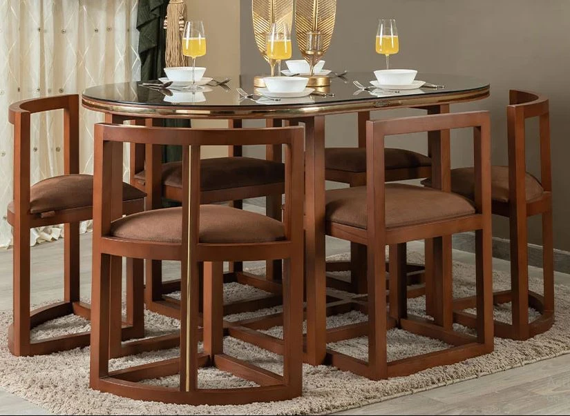 Dining Table: Made from natural beech wood and Sonta wood using the MDF technique.