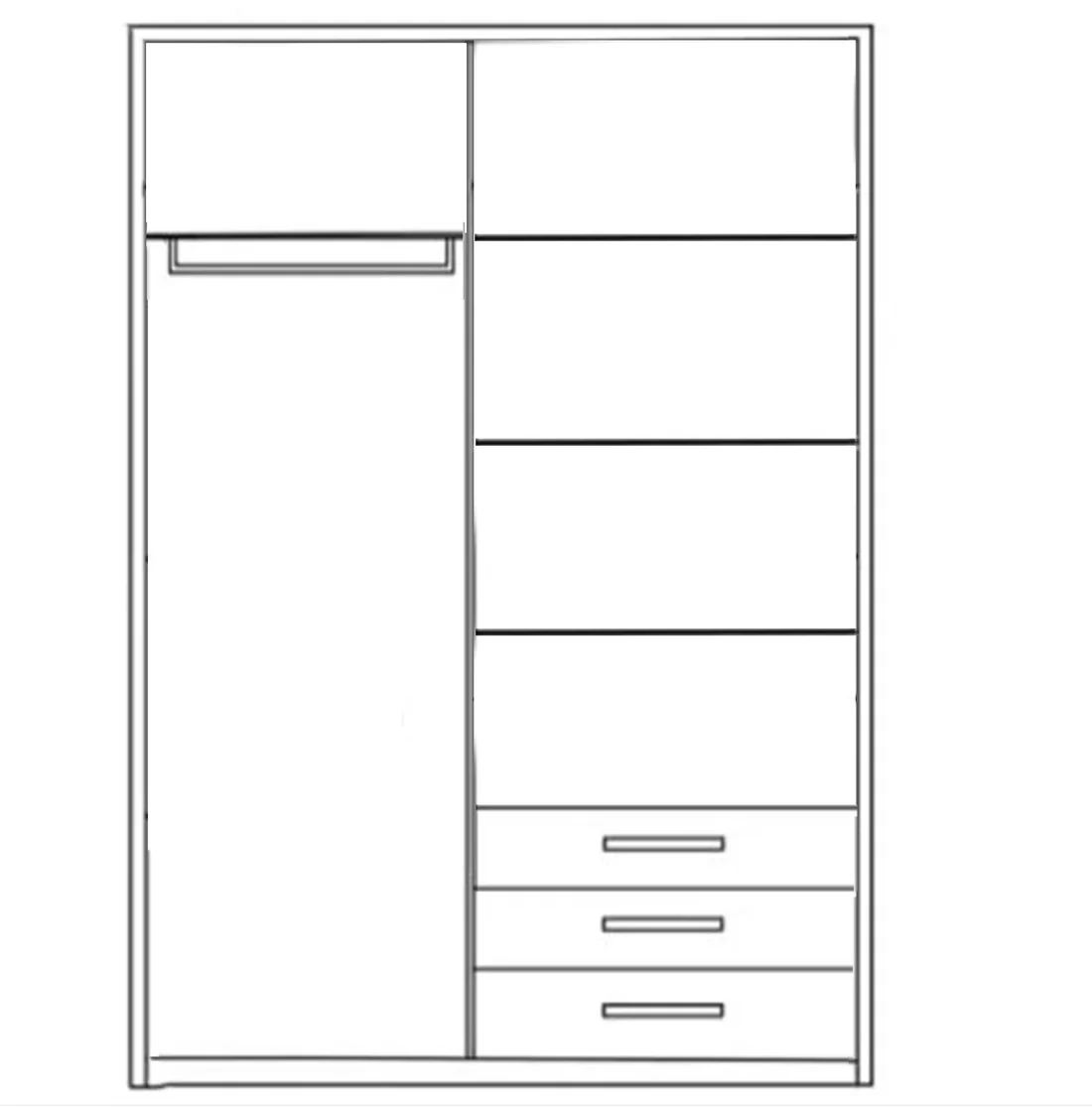 A stylish and practical wardrobe carefully divided to store and organize all your clothes and belongings with ease. Internal layout: the right section is a storage unit above drawers, and the left section is a hanging unit. A timeless essential that will stay with you for years while adding elegance and beauty to your room.