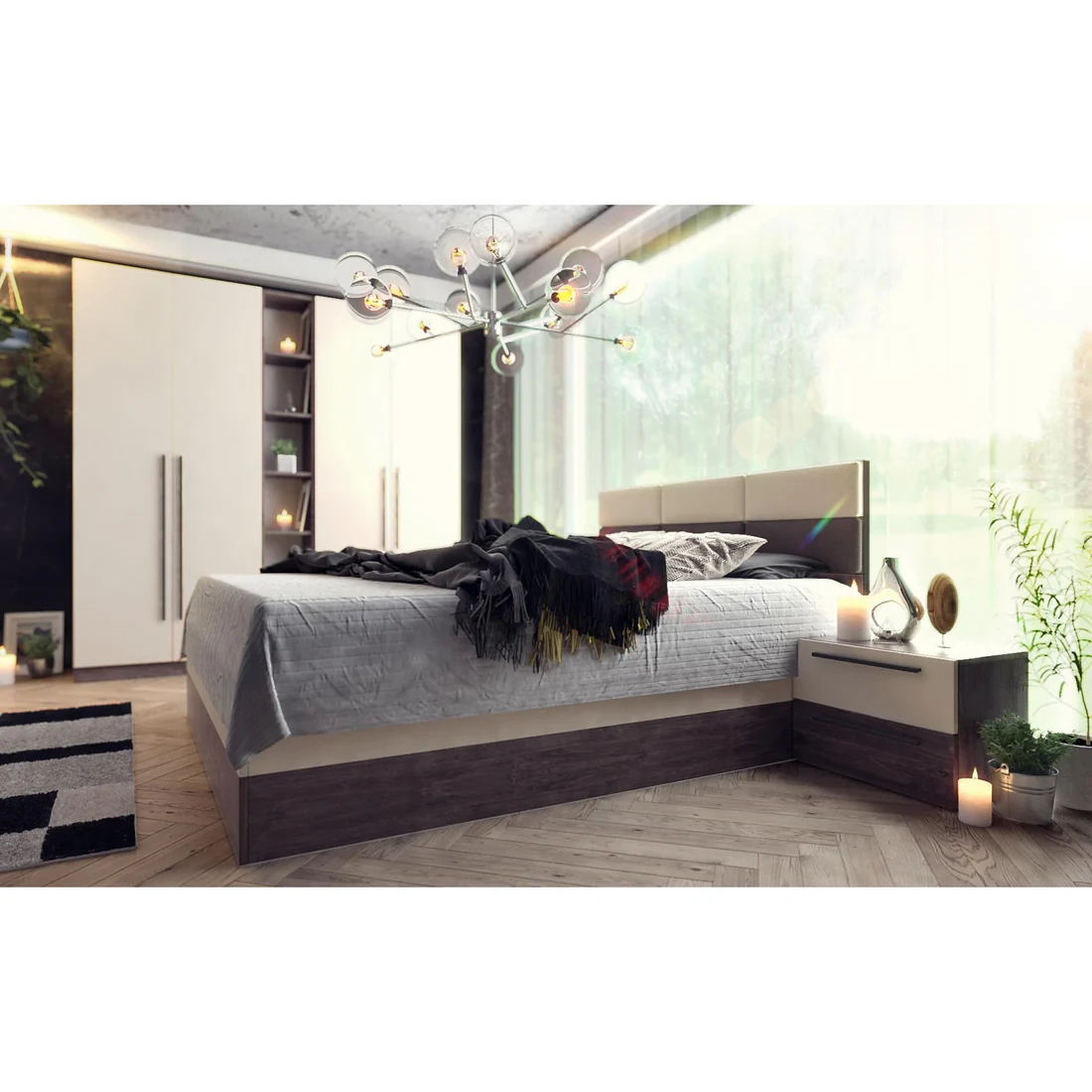 Included Components: Bed + Wardrobe + Dresser + 2 Nightstands
