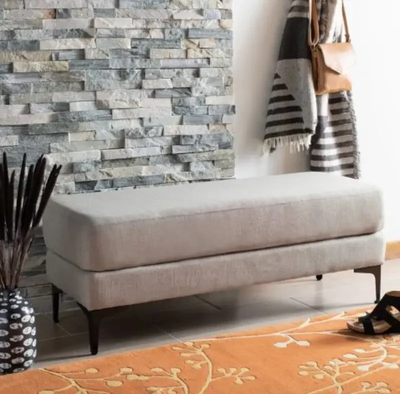 This elegant bench features a sleek grey linen fabric and black steel legs, offering a modern touch to any living room or hall. The bench is crafted from durable beech wood and reinforced with high-quality MDF and contral wood for enhanced strength. Its practical design and stylish appearance make it a perfect addition to any space.