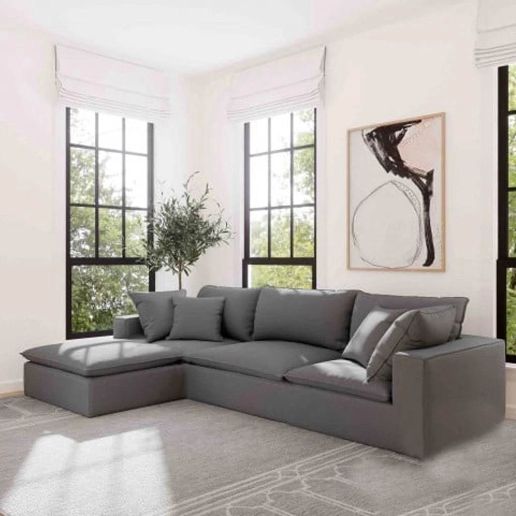 Enjoy both comfort and style with this grey corner sofa, consisting of two separate pieces. Its minimalist design and premium materials provide a cozy seating experience and a modern look that fits perfectly in various interior spaces.