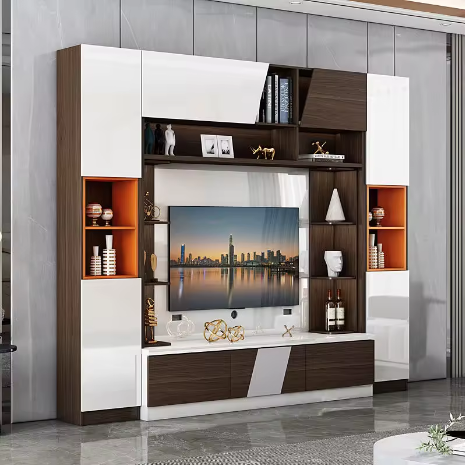 أضف لمسة من الأناقة والعملية إلى غرفة المعيشة مع هذه الوحدة العصرية. تجمع بين التصميم العصري والمظهر الجذاب مع مساحات تخزينية متعددة تساعدك على تنظيم الأجهزة والإكسسوارات بطريقة مرتبة وأنيقة.