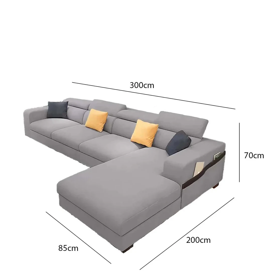 Add a touch of elegance to your home with this modern corner sofa, crafted from natural beech wood for durability and upholstered with soft velvet and plush foam for ultimate comfort during relaxation.
