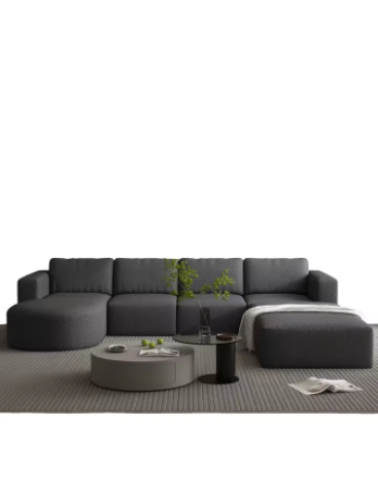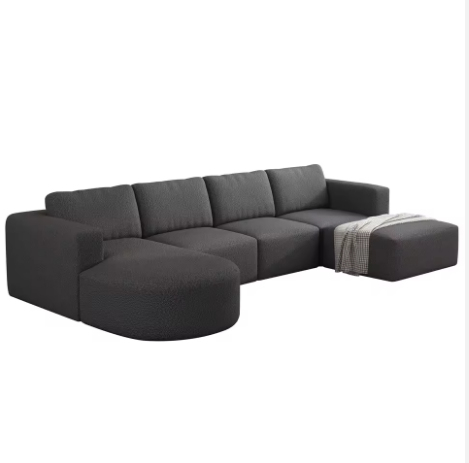 A modern U-shaped corner sofa in deep midnight black that adds a sense of luxury and comfort to your living room. Its spacious design offers the perfect setting for relaxing with family or friends, while the dark tone enhances the décor with an elegant, timeless look that complements any interior style.