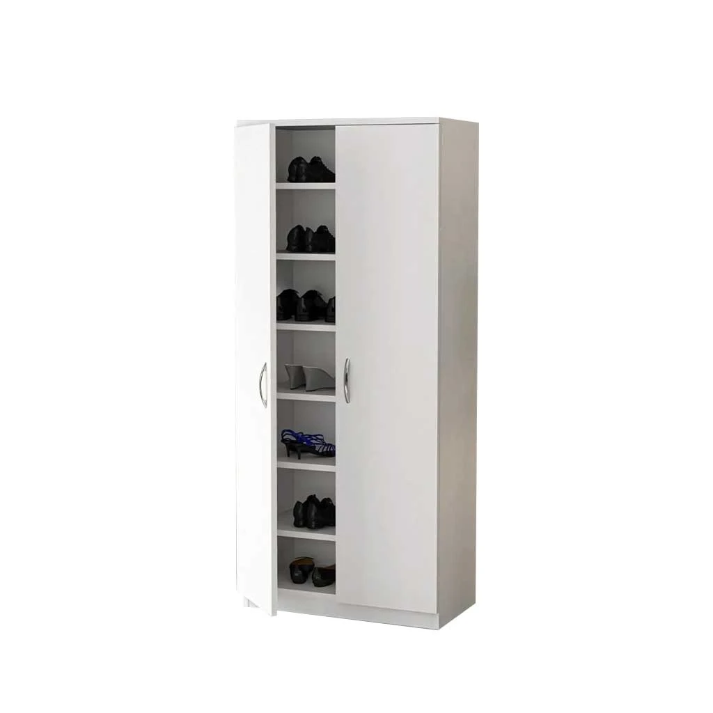 A practical and elegant white shoe cabinet, designed to organize footwear efficiently in entryways or bedrooms. Its sleek design complements all types of interior décor and adds a touch of style and order to your home.