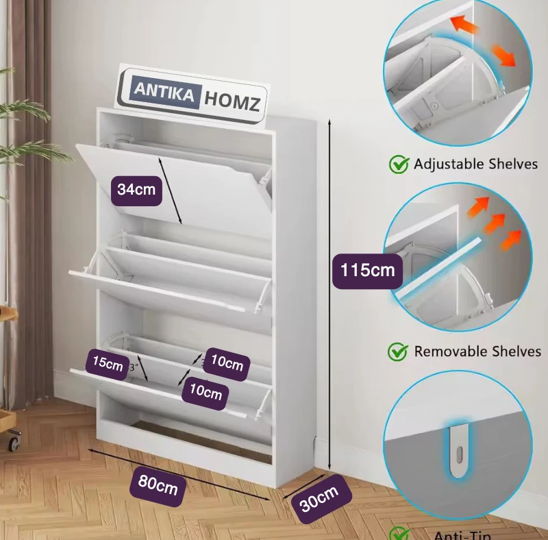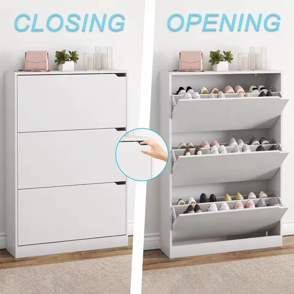 A modern and practical white shoe cabinet with a clean and elegant design. Ideal for entryways and hallways, it adds brightness and order to your space while complementing various interior styles. Its minimalist look makes it a perfect fit for narrow areas or modern apartments.