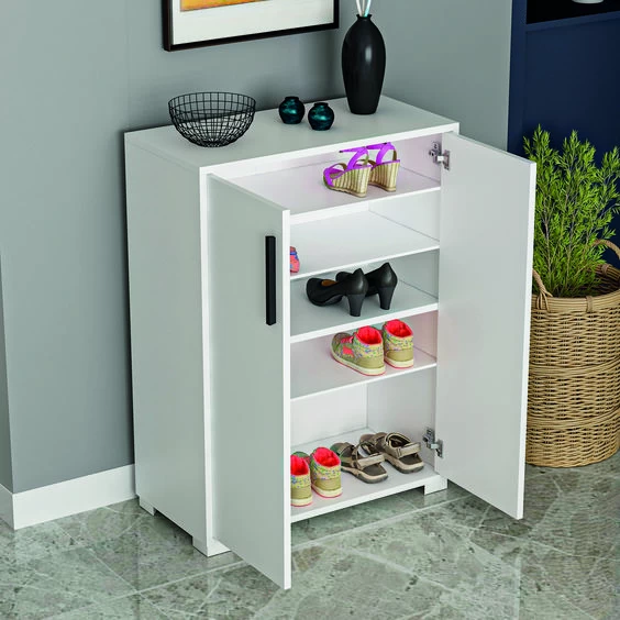 A modern shoe rack with a contemporary design, adding a touch of elegance and practicality to your home. The distinctive design helps to keep your shoes neatly organized without taking up much space.