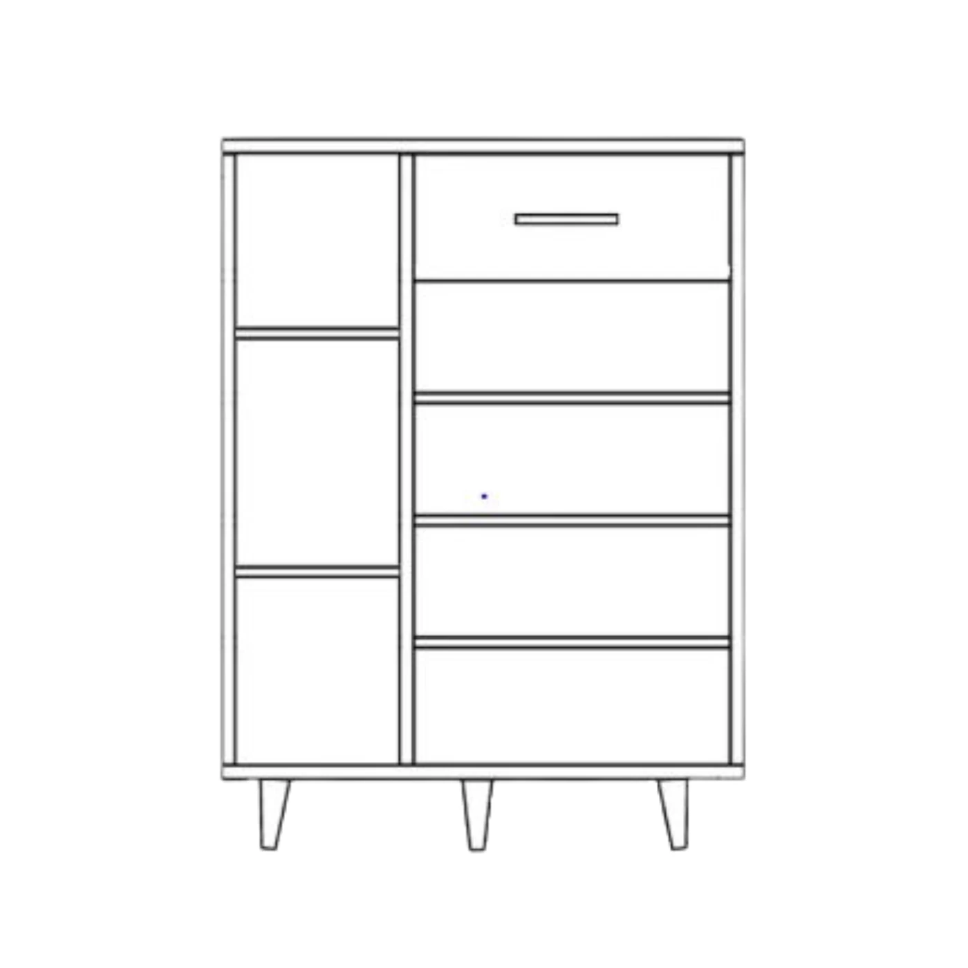 A stylish and practical shoe cabinet that combines modern design with smart functionality. It helps you organize your shoes in a neat and easily accessible way, giving your room a tidy and elegant appearance. The cabinet includes three open shelves, a functional drawer, and a side door with three additional shelves—offering ideal storage capacity while maintaining a refined aesthetic. It also protects your shoes from dust and damage, helping them last longer.