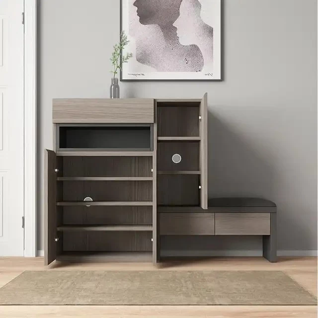 A modern and practical shoe cabinet with a padded seat for extra comfort while wearing or removing your shoes. Designed with a sleek "touch-to-open" system for a smooth, handle-free look and ease of use. Perfectly combines elegance, comfort, and practicality for your home.