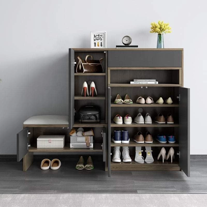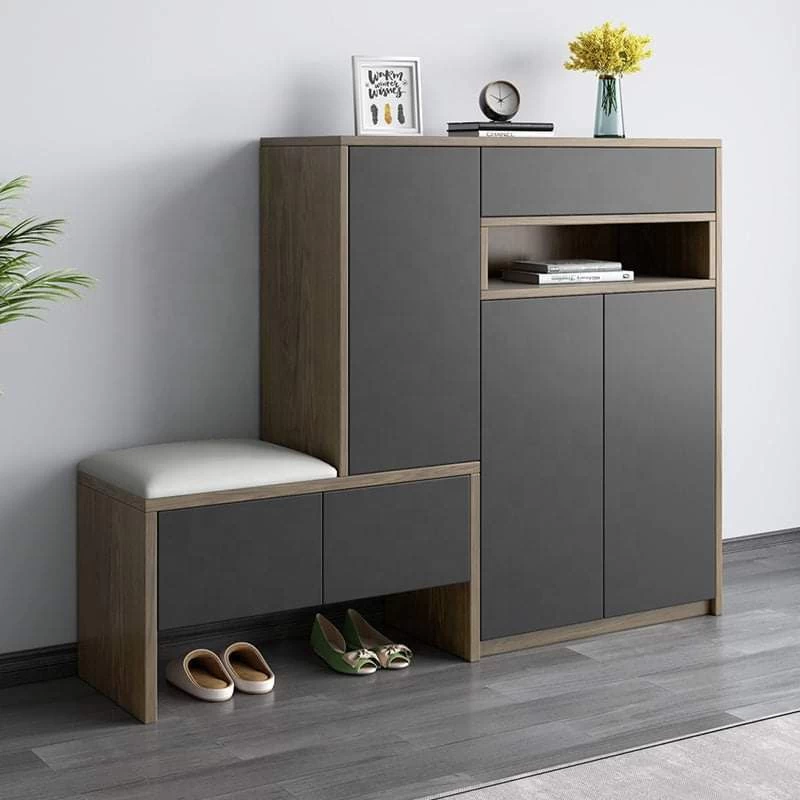 A modern shoe cabinet with a comfortable leather-covered seat, combining functionality and elegance to meet your daily needs. Perfect for organizing shoes and small items while adding a touch of luxury to any space.