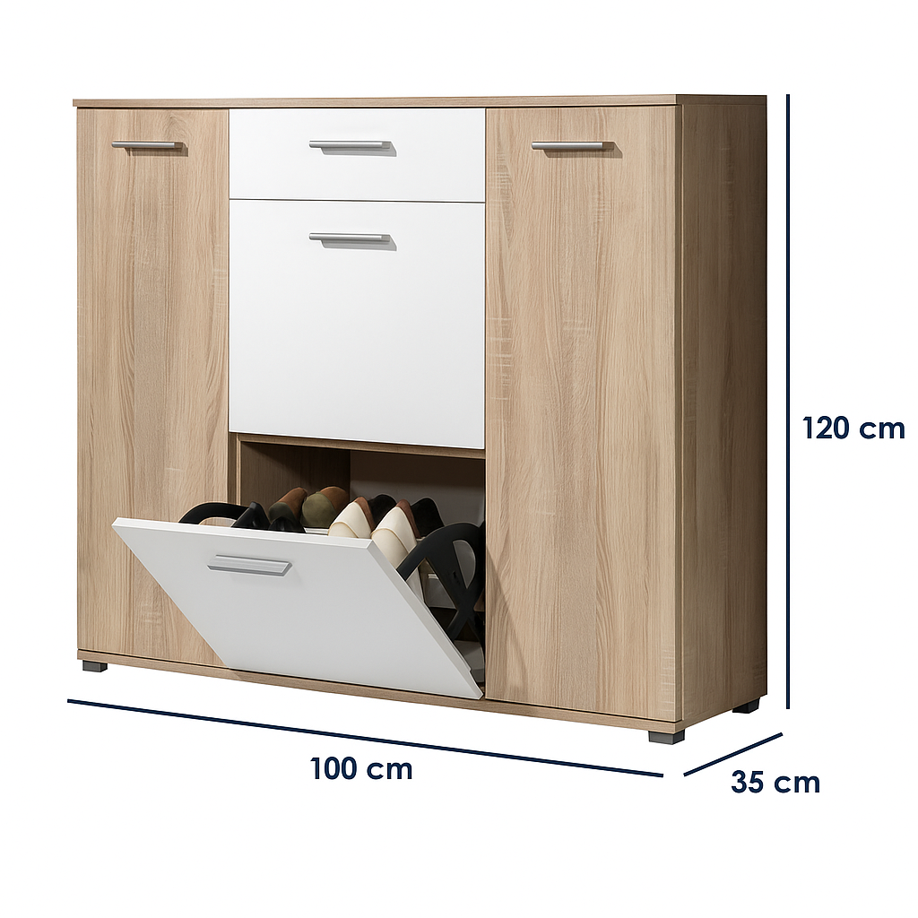 A practical and elegant shoe cabinet that offers the perfect storage solution, bringing a modern touch that complements a wide variety of home decor styles.