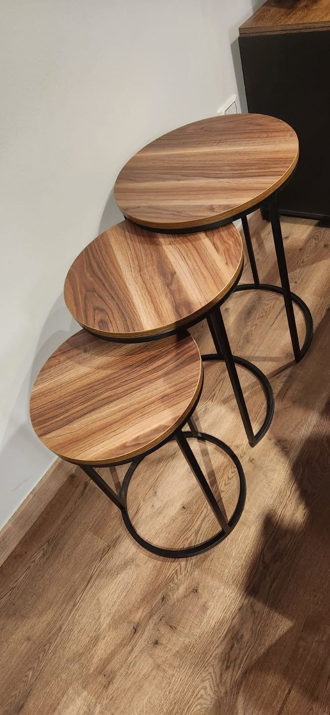 طقم ترابيزات جانبية مكون من ثلاث قطع مميز وأنيق، تم تصميمه بشكل رائع لك خصيصاً، كما أنه سيبقى معك لسنوات عديدة لأنه مصنوع من الأستيل المدهون الكتروستاتيك المقاوم للصدأ والخدوش والرطوبة.
