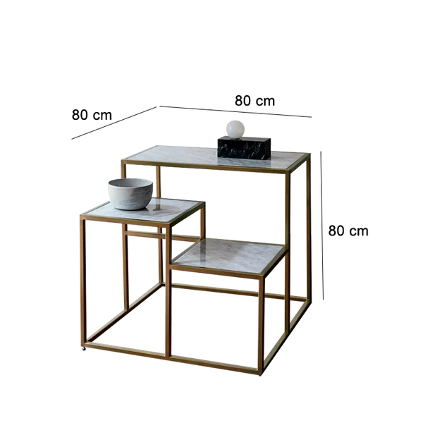 ترابيزة قهوة مميزة وأنيقة، تم تصميمها بعناية لتجمع بين الفخامة والوظيفة. تضيف لمسة راقية من الرخام الطبيعي الأبيض على قاعدة معدنية من الستيل المطلي بدهانات إليكتروستاتيك المقاومة للصدأ والرطوبة والخدوش، مما يجعلها قطعة فنية تدوم بجمالها وأناقتها لسنوات طويلة.