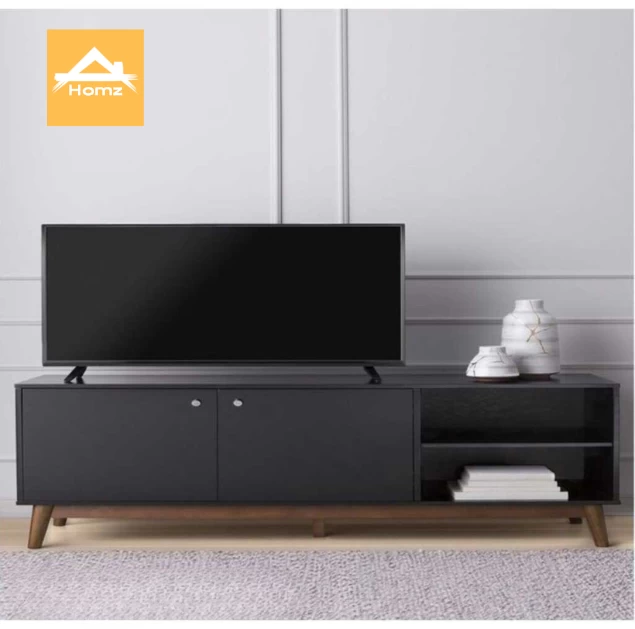Elegant Design: This TV stand features a sleek black finish paired with brown beech wood legs, offering a stylish contrast that elevates any living space.