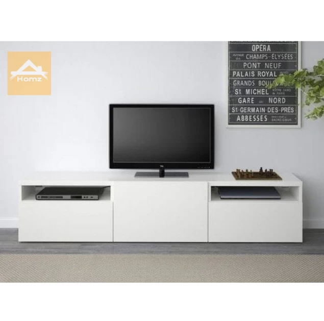 Modern white TV table combining simplicity and elegance, perfect for enhancing any living space.