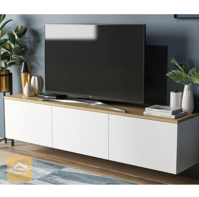 Modern & Practical Design: This TV stand features a stylish white and beige design, making it a great addition to any contemporary living room. It includes three flip doors for easy access to various storage spaces.