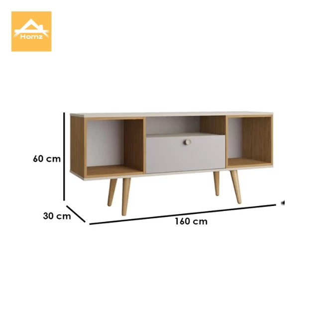 Elegant and practical design: This TV stand comes in white and beige colors, making it a perfect addition to any living room. Its functional design includes one closed drawer and three open storage compartments for displaying decorations or electronic devices.