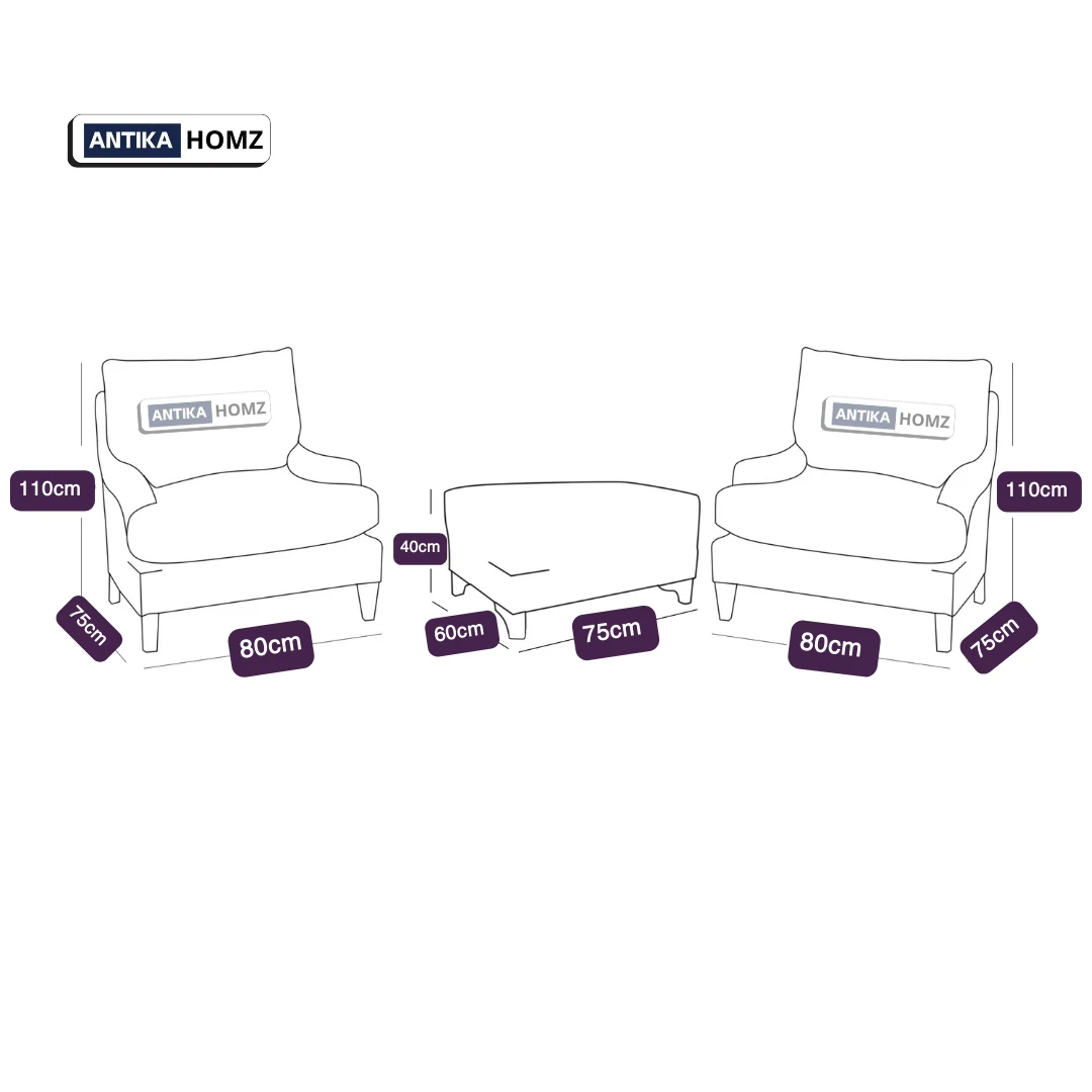 • Chair: 80 cm (Width) × 75 cm (Depth) × 110 cm (Height).