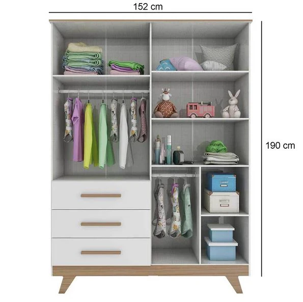 Modern and Elegant Design: A wardrobe that combines white and beige colors with sturdy beech wood legs, adding a sophisticated touch to your bedroom.