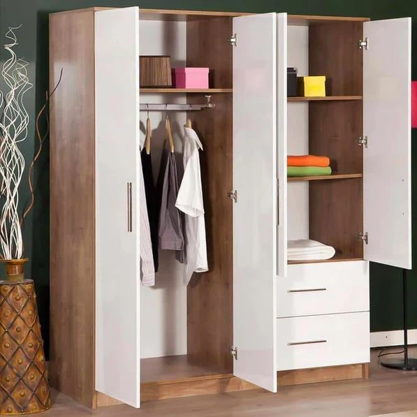 Elegant and Durable Design: A wardrobe combining white and brown colors, perfect for various bedroom décors, with a practical design for easy organization.