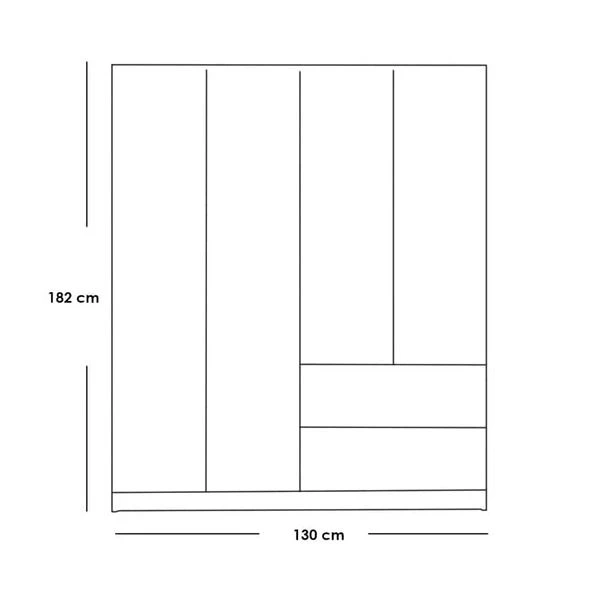 130 cm (Width) × 52 cm (Depth) × 182 cm (Height).