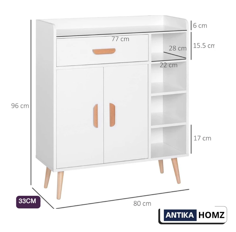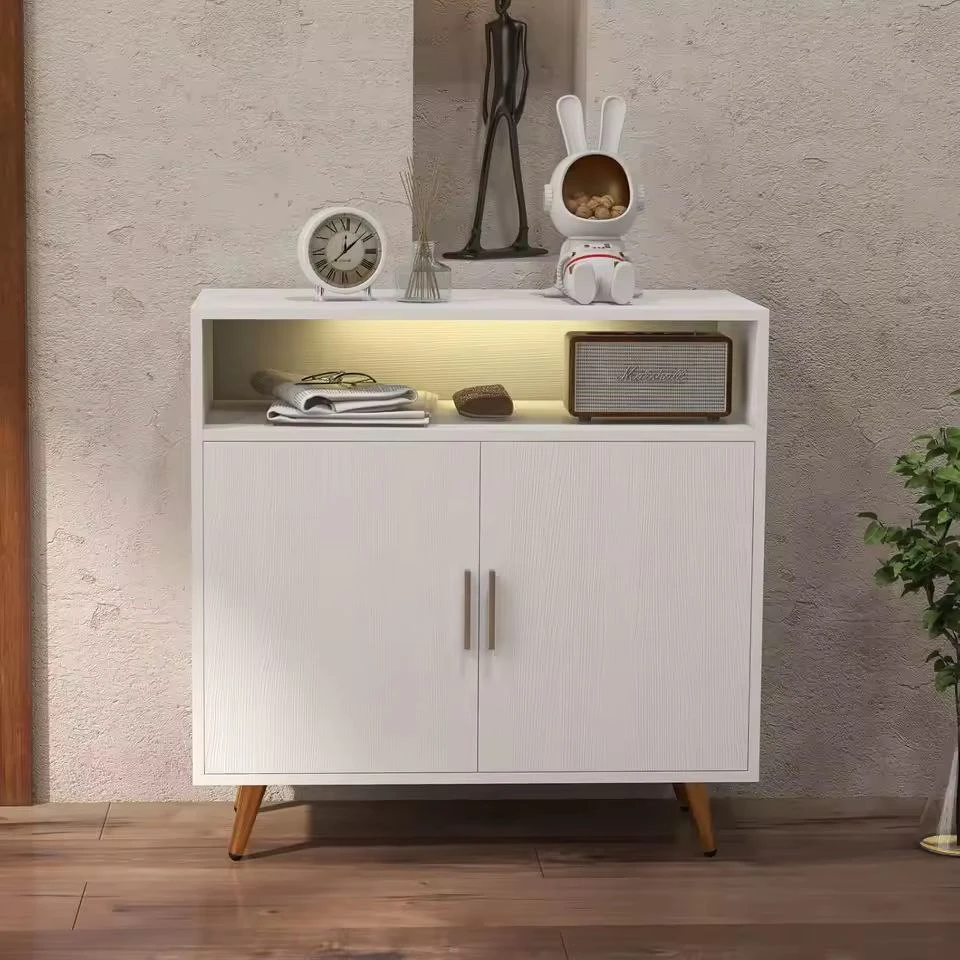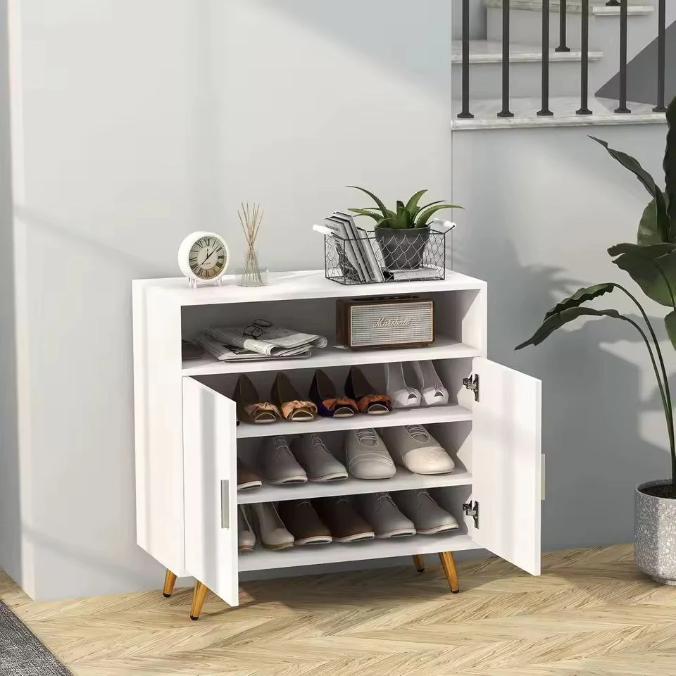 Modern and Elegant Design: A sleek white shoe cabinet featuring an open storage space for decor, adding a stylish and practical touch to any space.